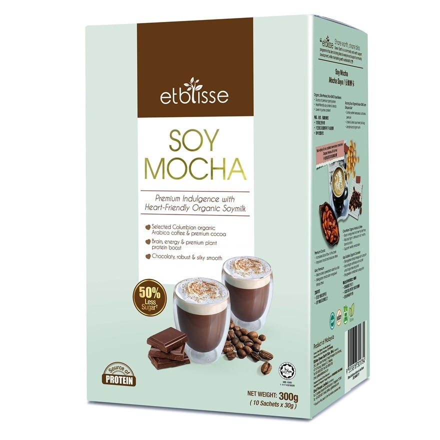 Etblisse Soy Mocha selected Columbian Organic Arabica coffee beans grown in fertile volcanic soil and high altitude, giving a more toned-down profile and nuanced blend of notes. When combining with rich and premium cocoa, this perfect symphony delivers goodness more than your average cup of joe. Besides, heart-friendly organic, skin-peeled, non-GMO soymilk further brings out the extraordinary smoothness and premium plant protein boost. Formulated with 50% less sugar^ and 100% no artificial additives (^compared to regular mocha drinks)