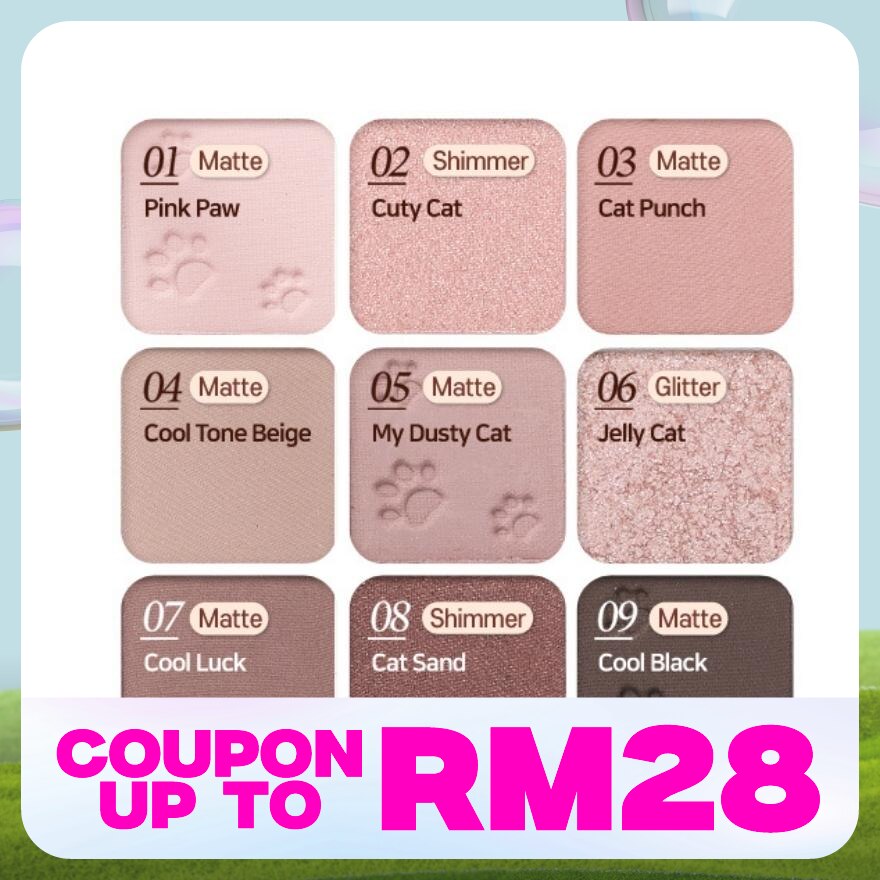 #PinkPaw:TALC,MICA,POLYPROPYLENE,TITANIUMDIOXIDE(CI77891),TRIETHYLHEXANOIN,ALUMINUMSTARCHOCTENYLSUCCINATE,PENTAERYTHRITYLTETRAETHYLHEXANOATE,DIMETHICONE,IRONOXIDES(CI77499),PCADIMETHICONE,ETHYLHEXYLGLYCERIN,WATER/AQUA/EAU,TRIETHOXYCAPRYLYLSILANE,CAPRYLYLGLYCOL,IRONOXIDES(CI77492),IRONOXIDES(CI77491),ALUMINUMHYDROXIDE,RED30(CI73360),METHICONE #CutyCat:TALC,MICA,CALCIUMTITANIUMBOROSILICATE,DIISOSTEARYLMALATE,TITANIUMDIOXIDE(CI77891),CALCIUMALUMINUMBOROSILICATE,CALCIUMSODIUMBOROSILICATE,DIMETHICONE,ALUMINUMSTARCHOCTENYLSUCCINATE,BORONNITRIDE,ZINCSTEARATE,IRONOXIDES(CI77491),OCTYLDODECYLSTEAROYLSTEARATE,SILVER(CI77820),ISOSTEARICACID,WATER/AQUA/EAU,LAUROYLLYSINE,ETHYLHEXYLGLYCERIN,SILICA,CAPRYLYLGLYCOL,TRIETHOXYCAPRYLYLSILANE,TINOXIDE,RED30(CI73360) #CatPunch:TALC,MICA,TITANIUMDIOXIDE(CI77891),NYLON-12,OCTYLDODECYLSTEAROYLSTEARATE,DIPHENYLSILOXYPHENYLTRIMETHICONE,MAGNESIUMMYRISTATE,SILICA,BORONNITRIDE,ULTRAMARINES(CI77007),IRONOXIDES(CI77491),IRONOXIDES(CI77492),IRONOXIDES(CI77499),CAPRYLIC/CAPRICTRIGLYCERIDE,RED30(CI73360),DIMETHICONE,ETHYLHEXYLGLYCERIN,METHICONE,CAPRYLYLGLYCOL,TRIETHOXYCAPRYLYLSILANE,LAUROYLLYSINE,ALUMINUMHYDROXIDE,ZINCSTEARATE #CoolToneBeige:TALC,MICA,POLYPROPYLENE,TITANIUMDIOXIDE(CI77891),TRIETHYLHEXANOIN,ALUMINUMSTARCHOCTENYLSUCCINATE,IRONOXIDES(CI77499),PENTAERYTHRITYLTETRAETHYLHEXANOATE,DIMETHICONE,IRONOXIDES(CI77492),IRONOXIDES(CI77491),ULTRAMARINES(CI77007),PCADIMETHICONE,ETHYLHEXYLGLYCERIN,WATER/AQUA/EAU,TRIETHOXYCAPRYLYLSILANE,CAPRYLYLGLYCOL,RED30(CI73360),ALUMINUMHYDROXIDE,METHICONE #MyDustyCat:TALC,MICA,BORONNITRIDE,TITANIUMDIOXIDE(CI77891),OCTYLDODECYLSTEAROYLSTEARATE,DIPHENYLSILOXYPHENYLTRIMETHICONE,MAGNESIUMMYRISTATE,SILICA,ULTRAMARINES(CI77007),MANGANESEVIOLET(CI77742),IRONOXIDES(CI77492),IRONOXIDES(CI77499),IRONOXIDES(CI77491),CAPRYLIC/CAPRICTRIGLYCERIDE,DIMETHICONE,TRIETHOXYCAPRYLYLSILANE,RED30(CI73360),ETHYLHEXYLGLYCERIN,METHICONE,CAPRYLYLGLYCOL,ALUMINUMHYDROXIDE,ZINCSTEARATE #JellyCat:CALCIUMALUMINUMBOROSILICATE,MICA,CALCIUMTITANIUMBOROSILICATE,TALC,SILICA,TITANIUMDIOXIDE(CI77891),DIMETHICONE,DIISOSTEARYLMALATE,DIPHENYLSILOXYPHENYLTRIMETHICONE,PROPYLENEGLYCOLDIBENZOATE,PENTAERYTHRITYLTETRAISOSTEARATE,MAGNESIUMMYRISTATE,TRIOCTYLDODECYLCITRATE,ZINCSTEARATE,DIMETHICONE/VINYLDIMETHICONECROSSPOLYMER,HYDROGENATEDSTYRENE/METHYLSTYRENE/INDENECOPOLYMER,IRONOXIDES(CI77491),TINOXIDE,TRIETHOXYCAPRYLYLSILANE,ETHYLHEXYLGLYCERIN,CAPRYLYLGLYCOL,CARMINE(CI75470),PENTAERYTHRITYLTETRA-DI-T-BUTYLHYDROXYHYDROCINNAMATE #CoolLuck:TALC,MICA,POLYPROPYLENE,TITANIUMDIOXIDE(CI77891),IRONOXIDES(CI77499),TRIETHYLHEXANOIN,IRONOXIDES(CI77491),MANGANESEVIOLET(CI77742),ALUMINUMSTARCHOCTENYLSUCCINATE,ULTRAMARINES(CI77007),PENTAERYTHRITYLTETRAETHYLHEXANOATE,DIMETHICONE,IRONOXIDES(CI77492),RED30(CI73360),PCADIMETHICONE,ETHYLHEXYLGLYCERIN,WATER/AQUA/EAU,TRIETHOXYCAPRYLYLSILANE,CAPRYLYLGLYCOL,ALUMINUMHYDROXIDE,METHICONE #CatSand:TALC,MICA,IRONOXIDES(CI77491),IRONOXIDES(CI77499),TITANIUMDIOXIDE(CI77891),ALUMINUMSTARCHOCTENYLSUCCINATE,NEOPENTYLGLYCOLDIETHYLHEXANOATE,BORONNITRIDE,HEXYLLAURATE,OCTYLDODECYLSTEAROYLSTEARATE,CETYLETHYLHEXANOATE,ISOSTEARICACID,NYLON-12,DIISOSTEARYLMALATE,WATER/AQUA/EAU,LAUROYLLYSINE,TRIETHOXYCAPRYLYLSILANE,ETHYLHEXYLGLYCERIN,CAPRYLYLGLYCOL,CARMINE(CI75470) #CoolBlack:TALC,MICA,IRONOXIDES(CI77499),POLYPROPYLENE,IRONOXIDES(CI77491),TRIETHYLHEXANOIN,MANGANESEVIOLET(CI77742),IRONOXIDES(CI77492),DIPHENYLSILOXYPHENYLTRIMETHICONE,ALUMINUMSTARCHOCTENYLSUCCINATE,PENTAERYTHRITYLTETRAETHYLHEXANOATE,DIMETHICONE,PCADIMETHICONE,ETHYLHEXYLGLYCERIN,WATER/AQUA/EAU,TRIETHOXYCAPRYLYLSILANE,CAPRYLYLGLYCOL,RED30(CI73360)