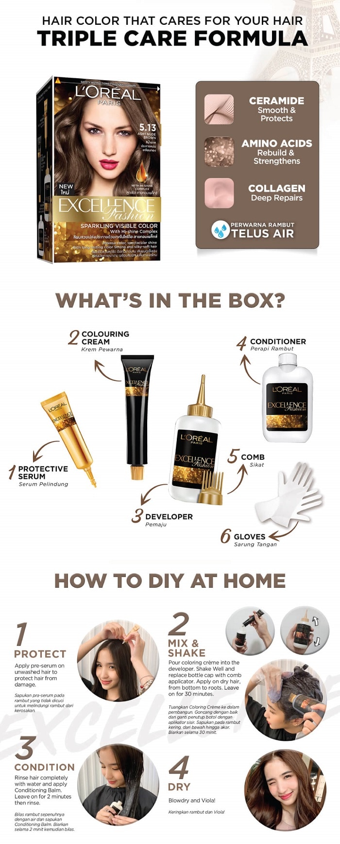 A SPARKLING NEW SECRET L'Oreal Paris Excellence now brings you intense, visible color and is infused with Hi-Shine Complex. Experience long-lasting vibrant color and spectacular shine.