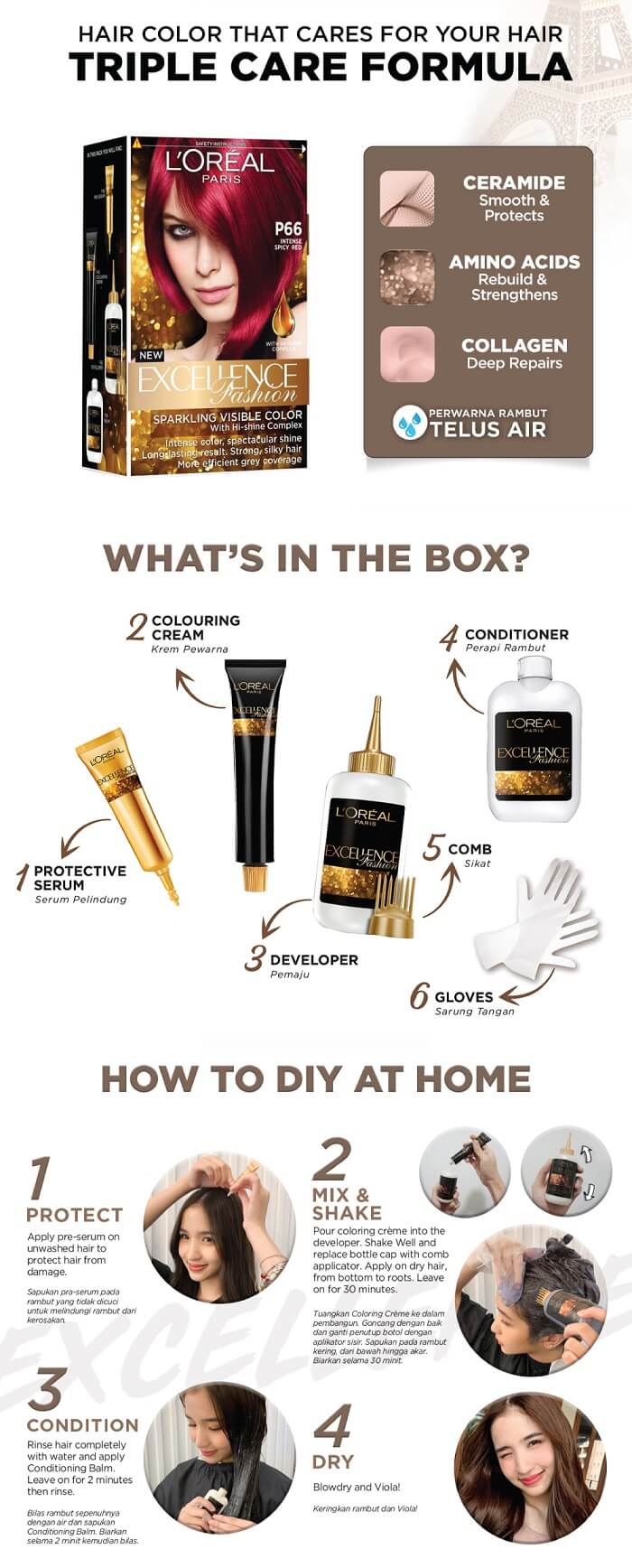 Step 1. COLOR with the protective cream. Apply to roots and massage deep into the roots, work into lengths and ends and leave in for 20 mins. Step 2. CLEANSE with the new shampoo, massage until rich and dense then rinse. Step 3.CARE with the nourishing mask, massage, rinse and dry