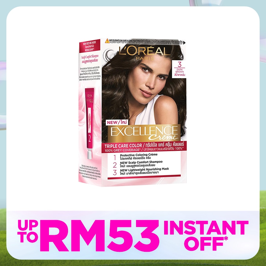 The NEW L’Oreal Paris Excellence Crème hair color is water permeable and comes with triple care color technology that cares for your hair and scalp, delivering long-lasting hair color and deep moisture.