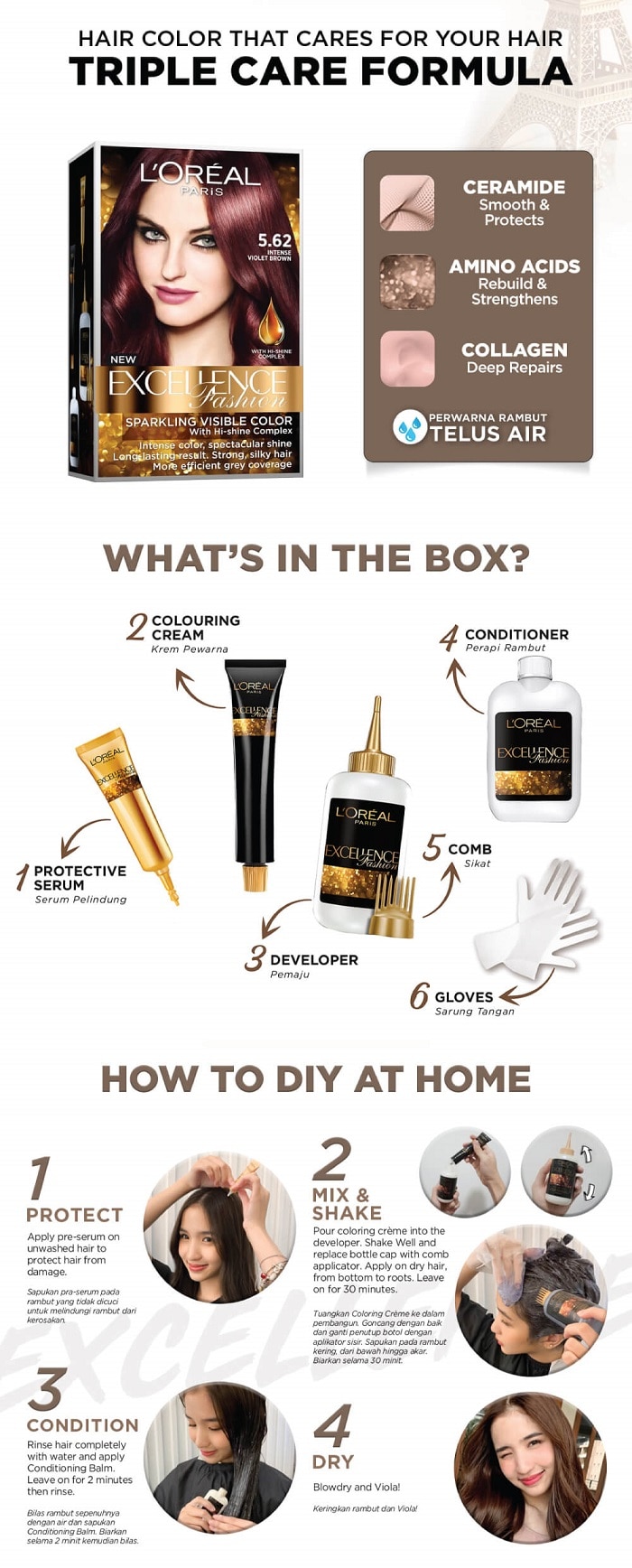 A SPARKLING NEW SECRET L'Oreal Paris Excellence now brings you intense, visible color and is infused with Hi-Shine Complex. Experience long-lasting vibrant color and spectacular shine.