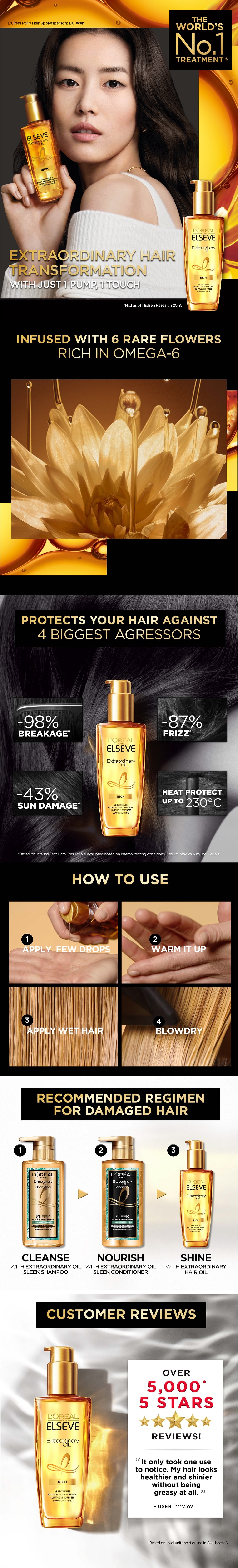 Our luxurious blend of 6 flower oils delivers intense nourishment for extraordinary hair, leaving you with smooth and shiny locks with a non-greasy finish. Diperkaya dengan 6 minyak bunga istimewa.