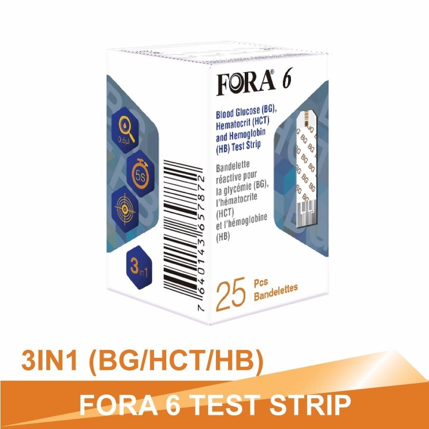 FORA 6 Gold Strip For BG-HCT-HB (3 in 1), 25's/vial, one vial/box