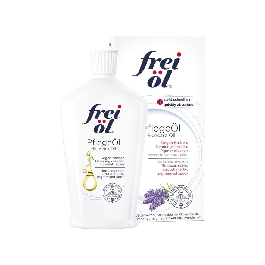 Daily use for body and face: After cleansing, apply the Frei ol Skincare Oil generously on still moist skin and massage in thoroughly. For scars, stretch marks and pigmentation: Apply a generous amount of Frei ol Skincare Oil to the affected area and massage in using circular motions. Apply twice a day for at least 3 months. Do not apply on wounds before healed. Tip: Mix with salt or sugar and use as a body peeling treatment.