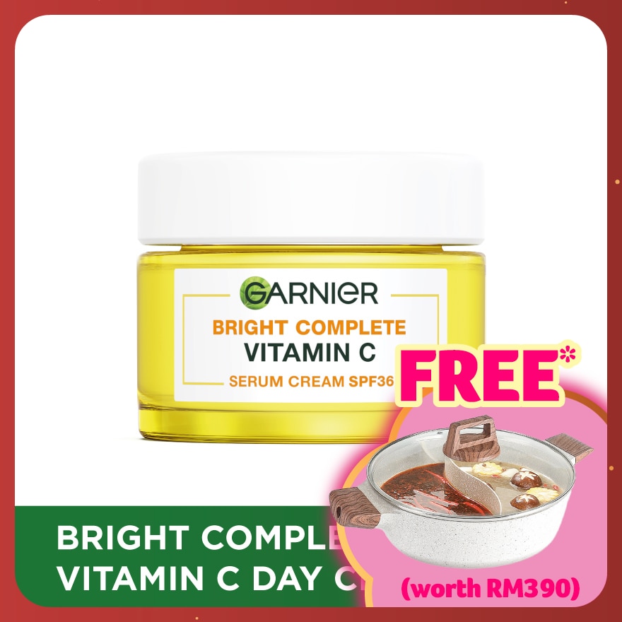 New Innovation Garnier Light Complete Serum Cream SPF 19 PA +++ with 3X Vitamin C* and fresh Yuzu Lemon Fruit from Japan.