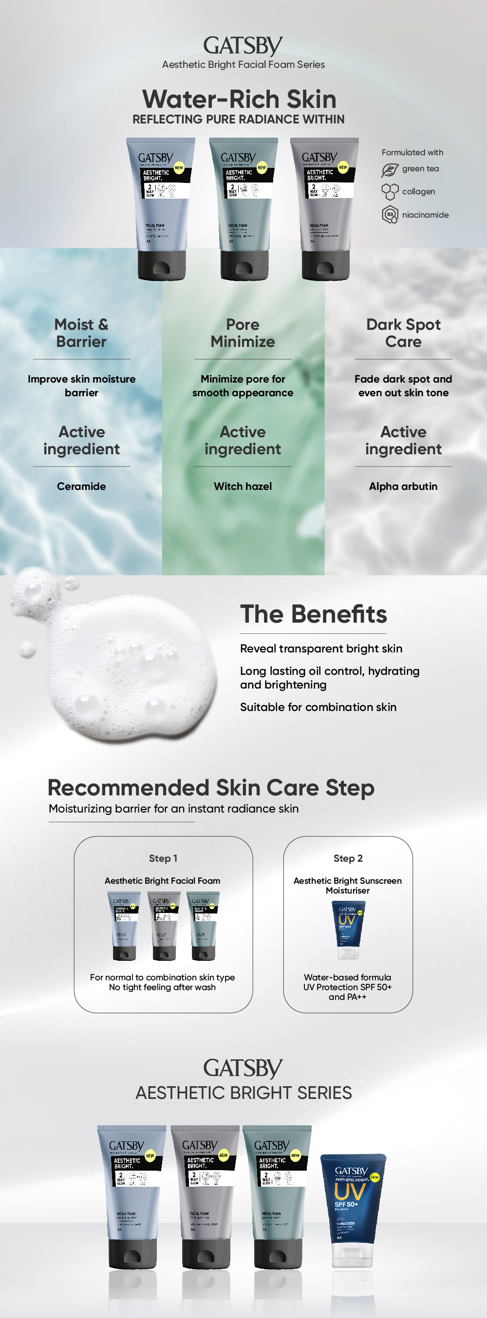 WATER, MYRISTIC ACID, STEARIC ACID, GLYCERIN, LAURIC ACID, POTASSIUM HYDROXIDE, PALMITIC ACID, PEG-6, PEG-32, SORBITOL, MALTITOL, GLYCERYL STEARATE, NIACINAMIDE, POLYSORBATE 65, FRAGRANCE, LAURAMIDOPROPYL BETAINE, BUTYLENE GLYCOL, POLYQUATERNIUM-7, MENTHOL, BENTONITE, SODIUM CHLORIDE, ALPHA-ARBUTIN, TETRASODIUM EDTA, HYDROLYZED COLLAGEN, MORUS ALBA LEAF EXTRACT, SODIUM BENZOATE, SODIUM HYALURONATE, CAMELLIA SINENSIS LEAF EXTRACT