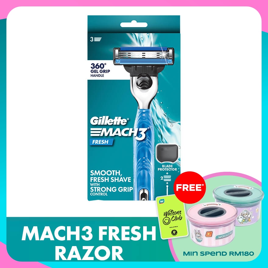 With 360 Aqua Grip handle, the Gillette Mach3+ is built for total control even when wet.Engineered to last for 15 comfortable shaves. MACH3+ razors fit all MACH3 blade refills.