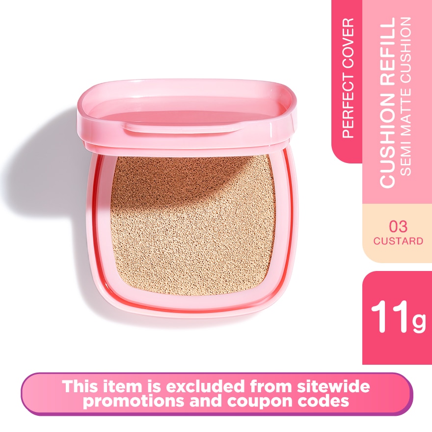 The Perfect Cover Cushion provides high coverage while feeling lightweight on the skin and it is enriched with skincare ingredients like mixed berry extract, panthenol, and tocopherol to prevent dullness and dryness throughout the day. It features Surface Treatment Technology for a softer texture and reduced dullness, along with lamellar silicon-treated powder and reticulated silicone resin film for a seamless, waterproof, and transfer-proof finish. Available in 5 shades to suit different skin tones, it is suitable for all Asian skin types.