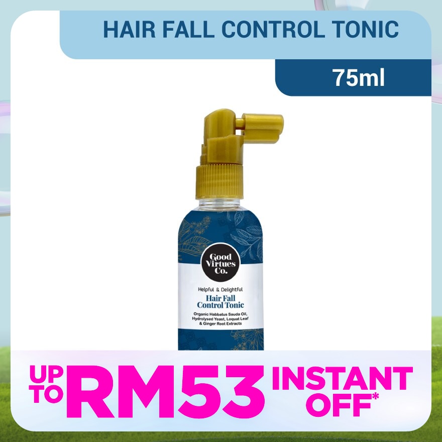 After shampooing and drying your hair, spritz the tonic directly on scalp. Massage scalp gently until fully absorbed. Repeat process if desired. For best results, use daily with GOOD VIRTUES CO. Happy & Heavenly Hair Fall Control Shampoo.