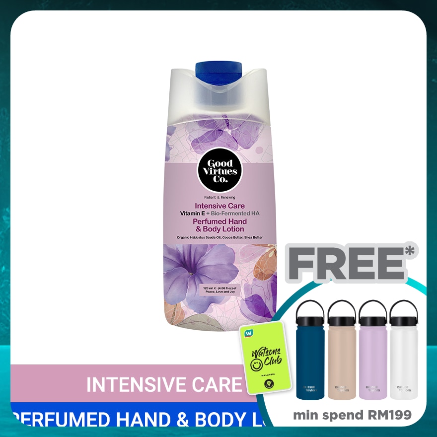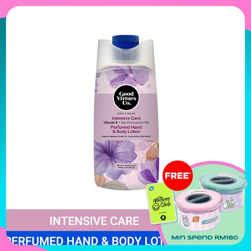 GOOD VIRTUES CO. INTENSIVE CARE HAND & BODY LOTION FOR DRY SKIN ORGANIC HABBATUS SAUDA OIL COCOA BUTTER, SHEA BUTTER & PENTAVITIN