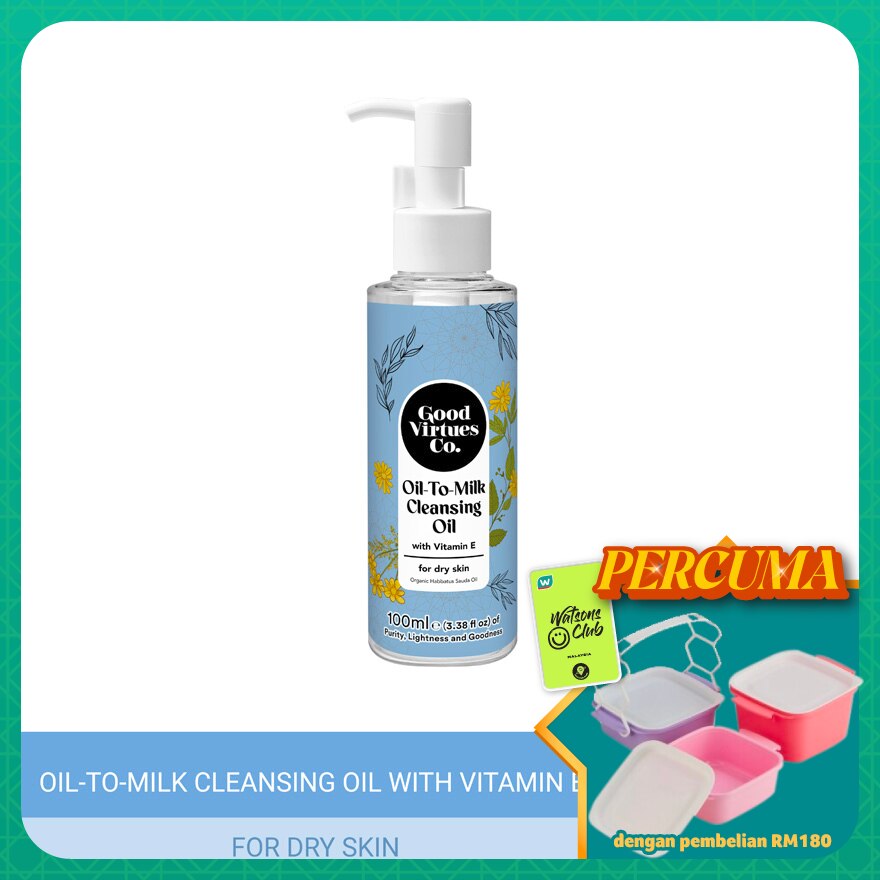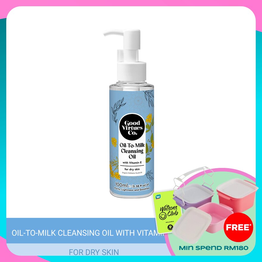 Oil-To-Milk Cleansing Oil with Vitamin E 100ml. Pump sufficient amount and spread evenly onto the dry face, massage thoroughly to remove scum and impurities. Rinse off thoroughly and continue with face cleansing. Use 2 3 times a week.