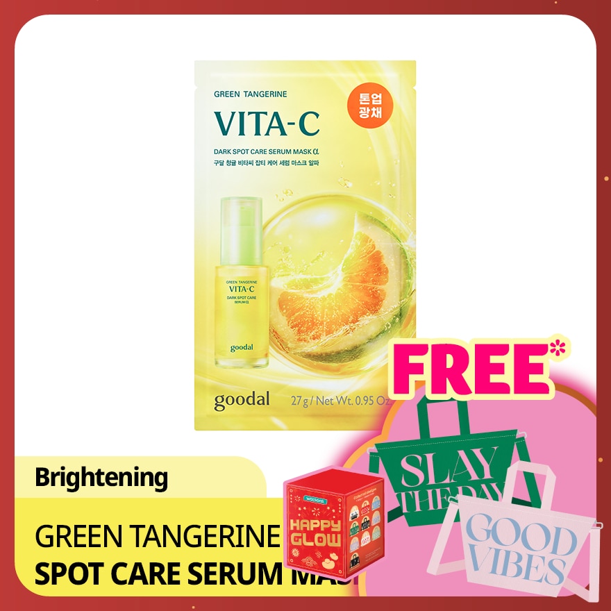 Dark spot tone-up mask for all-around brightening from darkened pores to overall skin tone by combining a serum infused with green tangerine exosome and 5% niacinamide with a pure vitamin sheet targeting both visible and hidden blemishes. Hyaluronic acid replenishes moisture deep into the 10th layer of skin (corneum), working in synergy with spot care to reveal radiant, bright skin. he soft sheet made with ultra-fine microfiber technology adheres seamlessly along the facial contour! Delivers 125% improved adherence compared to the original green tangerine mask. Infused with pure Vitamin C, the vita skin-fit sheet directly delivers active ingredients to skin. Clean, hypoallergenic use with bamboo-derived, certified vegan sheet.