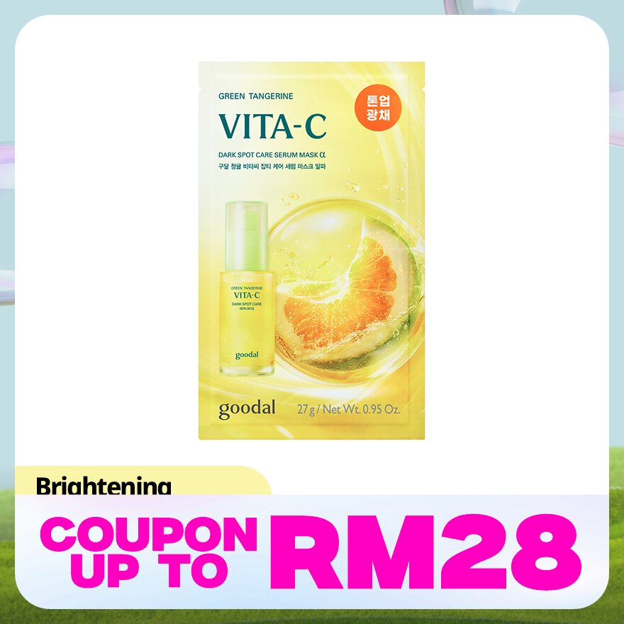 Dark spot tone-up mask for all-around brightening from darkened pores to overall skin tone by combining a serum infused with green tangerine exosome and 5% niacinamide with a pure vitamin sheet targeting both visible and hidden blemishes. Hyaluronic acid replenishes moisture deep into the 10th layer of skin (corneum), working in synergy with spot care to reveal radiant, bright skin. he soft sheet made with ultra-fine microfiber technology adheres seamlessly along the facial contour! Delivers 125% improved adherence compared to the original green tangerine mask. Infused with pure Vitamin C, the vita skin-fit sheet directly delivers active ingredients to skin. Clean, hypoallergenic use with bamboo-derived, certified vegan sheet.