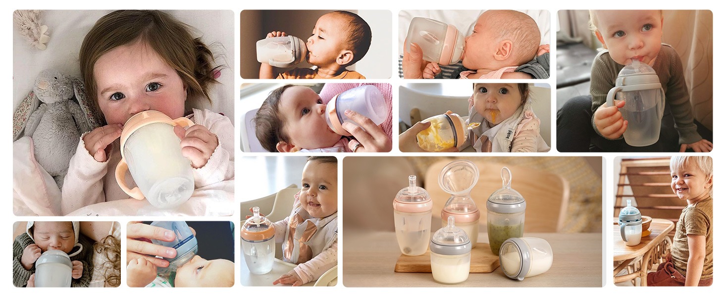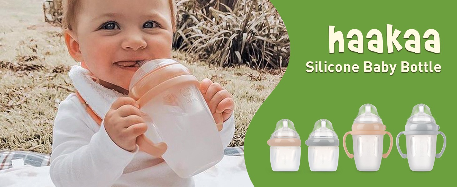 Haakaa's Gen. 3 Silicone Baby Bottle is the perfect choice for teaching your little one independence! It's made of 100% medical grade silicone,making it uniquely soft and safe for your baby. It is easy for little hands to hold,and because the silicone is impact-resistant,there's no need to worry about breakages. The most exciting feature of our Silicone Baby Bottle is that it is fully compatible with our Gen. 3 Breast Pump and the rest of our silicone bottle attachments! With a quick twist of the top,you can swap out your baby bottle teat for any of our range of optional interchangeable attachments (each sold separately). We have our famous breast pump flange that lets you express directly into the bottle,a feeding spoon dispenser for when your baby moves on to solids,a sippy bottle top to help your independent toddler transition from a bottle to a cup and a sealing disk to preserve any leftover food or milk after feeding. Please note: Our Silicone Baby Bottle comes in two sizes - 160ml and 250ml. A convenient handle is included with the 250ml model. A slow flow nipple is included with the 160ml bottle and a variable flow nipple is included with the 250ml bottle (both come with a clear PP cap to keep your teat covered between uses).
