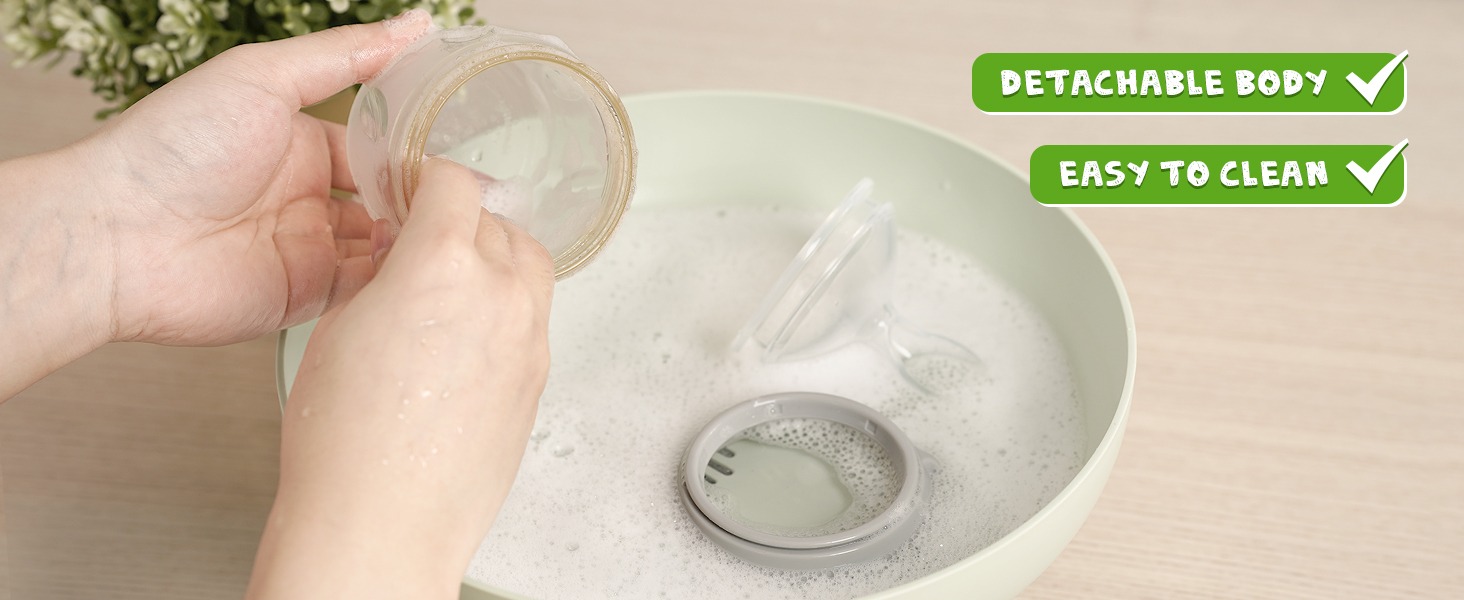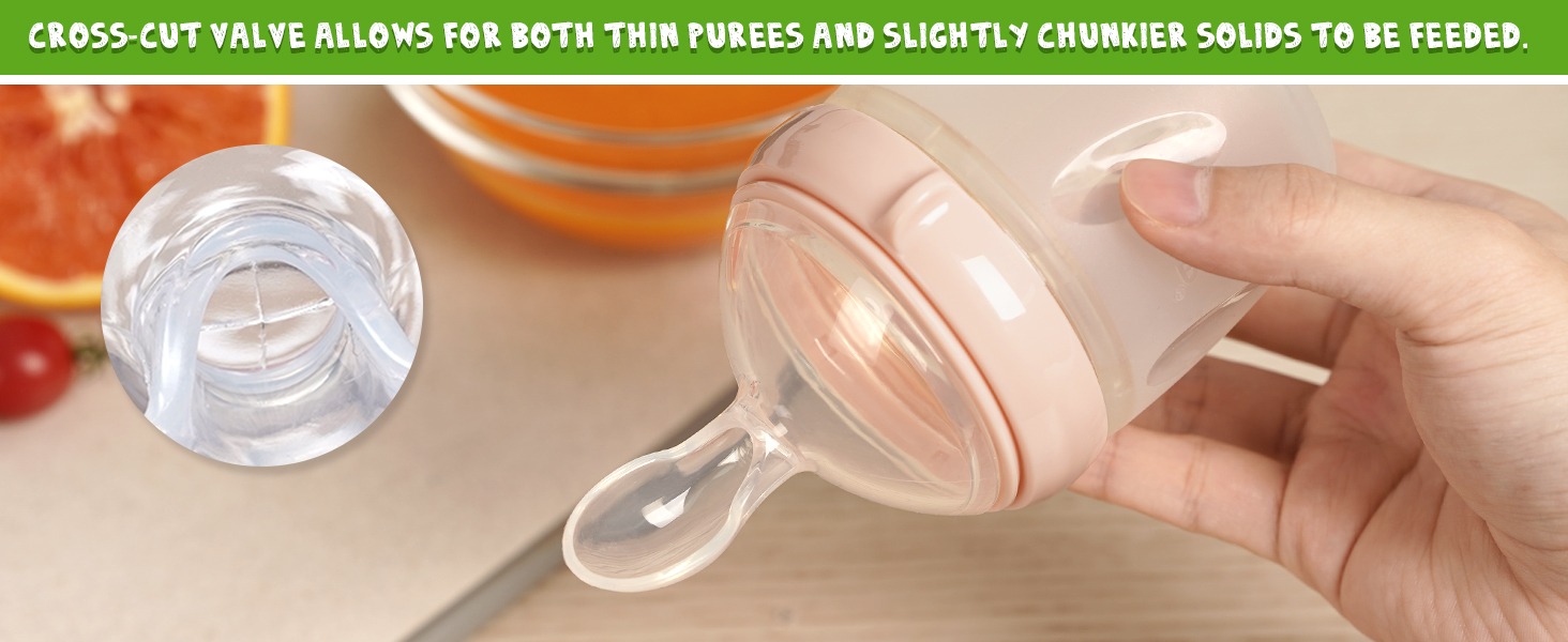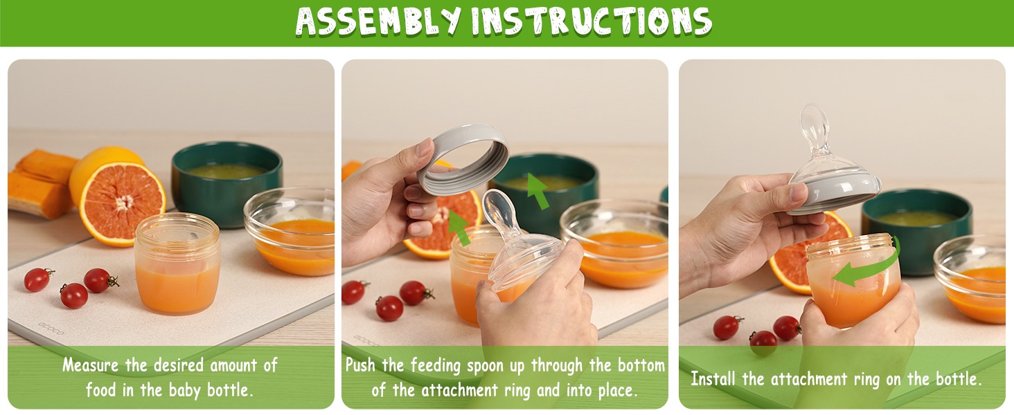 With a quick twist of the top,you can swap out your feeding spoon head for any one of our range of optional interchangeable Gen. 3 attachments (each sold separately). We have our famous breast pump flange that lets you express directly into the bottle,a baby bottle lid to feed your little one expressed milk,a sippy bottle top to help your independent toddler transition easily from a bottle to a cup,and sealing disks to preserve any leftover food or milk after feeding!