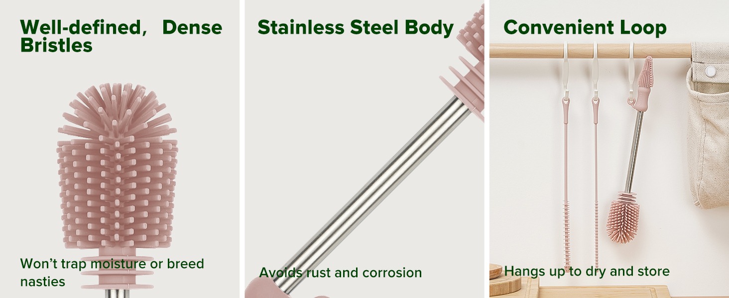 - -Multi-purpose brushes efficiently clean everything, from baby and maternity gear to all around the house!