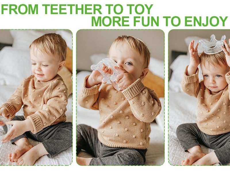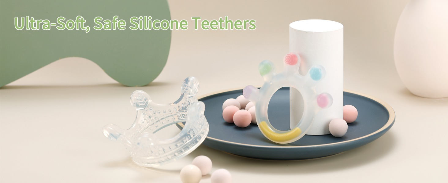 The Silicone Crown Teether is super soft and flexible,with a shape and size that makes it easy for little hands to hold. Not only do the raised bumps and ridges along the side help to soothe your baby's aching gums,but they also encourage your little one's sensory development and motor skills!