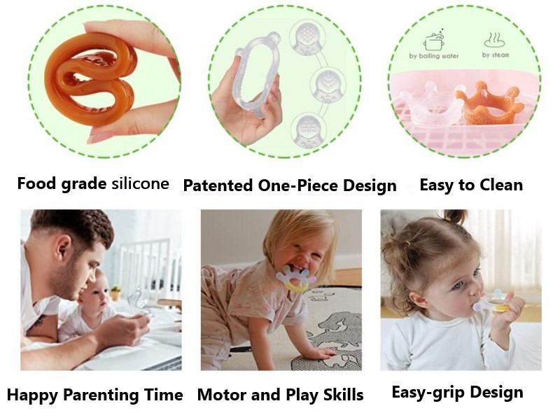 • Made of 100% food-grade silicone that's safe for little mouths to suck and chew on.