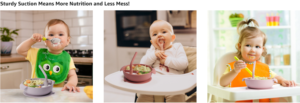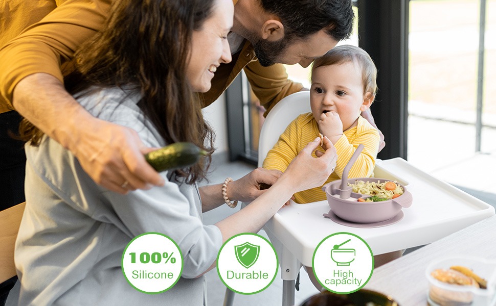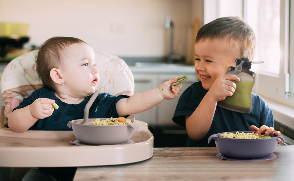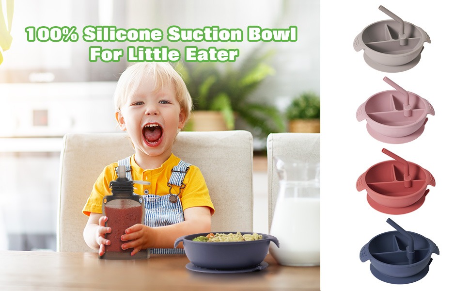 The Silicone Divided Bowl comes with a short silicone straw that can be attached to allow your child to drink from the compartments.