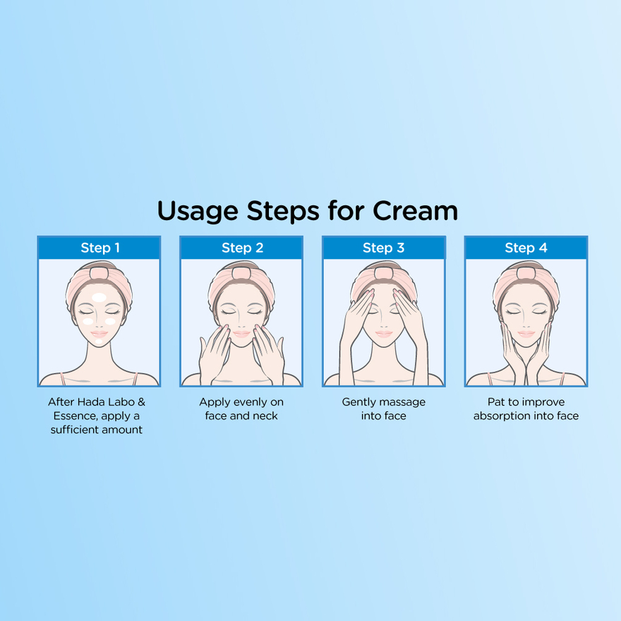 Use twice a day after Hada Labo Hydrating Lotion. Takesufficient amount and apply evenly on face & neck. Gently massageand pat to allow absorption into the skin.