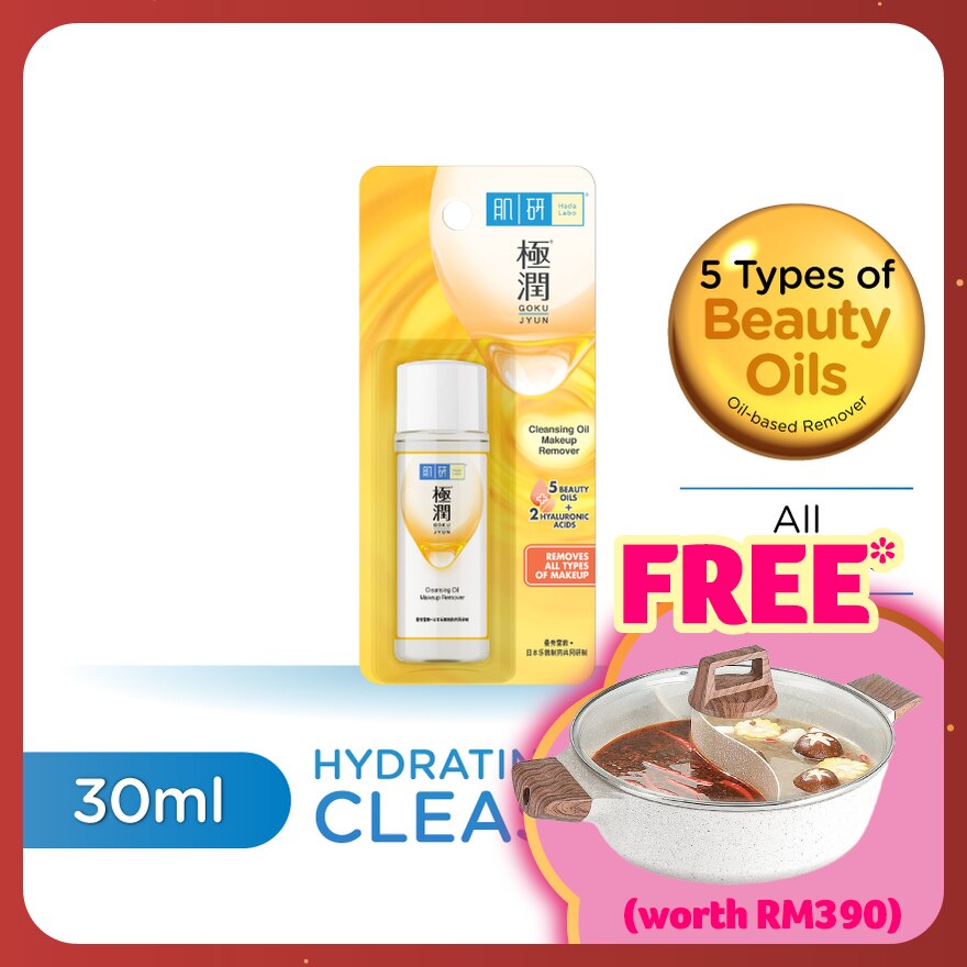 Hada Labo Super Hyaluronic Acid Hydrating Cleansing Oil infused with 5 types of Beauty Oils: Olive Oil, Macadamia Seed Oil, Jojoba Seed Oil, Rosehip Oil and Moringa Seed Oil to richly nourish skin and gently melt away all types of make-up, leaving skin feeling clean, balanced, and moisturized. 5 Beauty Oils with wonderful skincare benefits, come in light & non-greasy textures, leaving skin feeling clean, fresh, and moisturized after cleansing. Super Hyaluronic Acid contains twice the moisture retention capacity of normal Hyaluronic Acid (HA) to lock and retain larger volume of moisture in the skin for long-lasting hydration. Absorbent Hyaluronic Acid has a strong moisture retention function that allows moisture to be retained longer in the skin even after cleansing. Effective Cleansing: With a lightweight texture, it effortlessly emulsifies and effectively removes oil, impurities, and even stubborn makeup such as waterproof makeup and sunscreen. Intensive Hydration: Infused with 2 types of HA, it deeply hydrates the skin, resulting in a well-moisturized, nourished and beautifully radiant complexion. Anti-Pollution: Protects the skin from environmental pollutants and reduces the adhesion of pollution particles to the skin. Low Irritation: Free of alcohol, fragrance, colorant and mineral oil.
