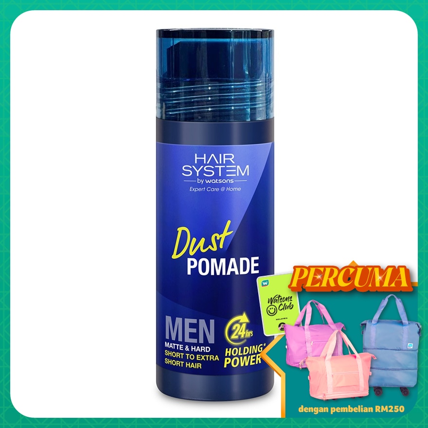 Transform your style with Hair System by Watsons Powder Pomade. Its lightweight, innovative formula boosts volume and texture, delivering a smooth matte finish and all-day hold.