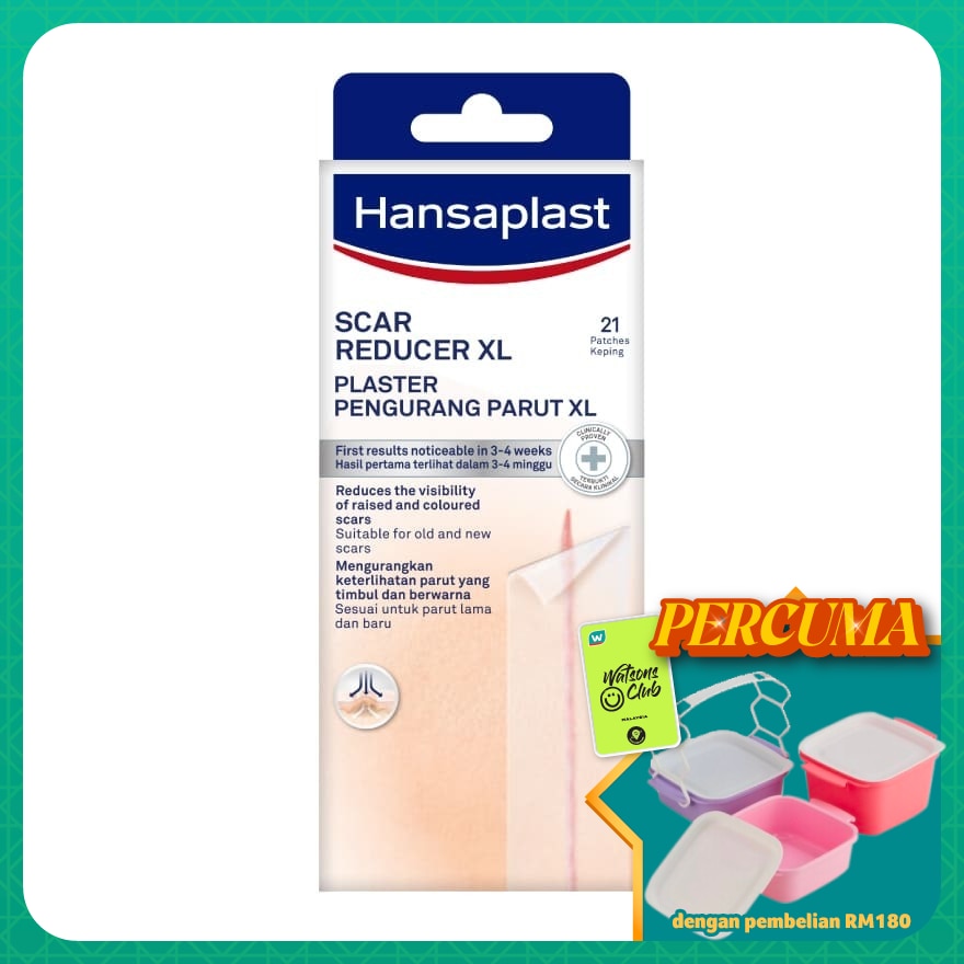 Hansaplast Scar Reducer is a transparent, self-adhesive patch made of polyurethane. Products made of this material have been used for years in professional wound care. The patches contain no active ingredients (pharmaceuticals) that may cause side effects. They are a safe and efficient way to effectively reduce raised and coloured hypertrophic scars or keloid scars.