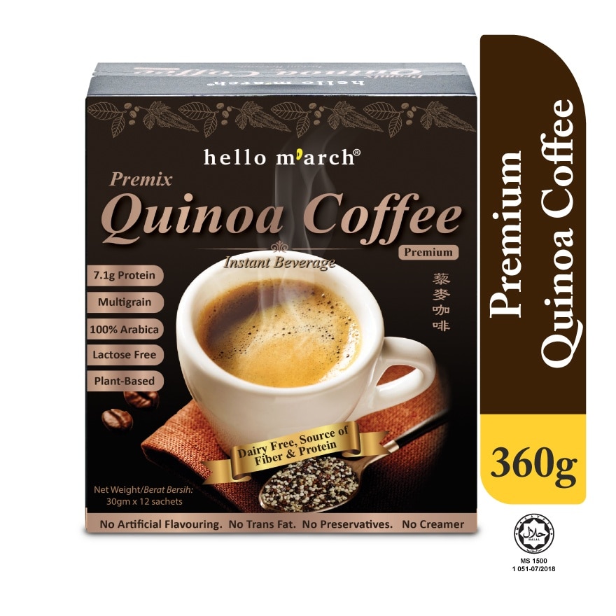 1. Empty a sachet of Quinoa Coffee into a cup. 2. Add in 200ml hot water. 3. Stir well & ready to serve.