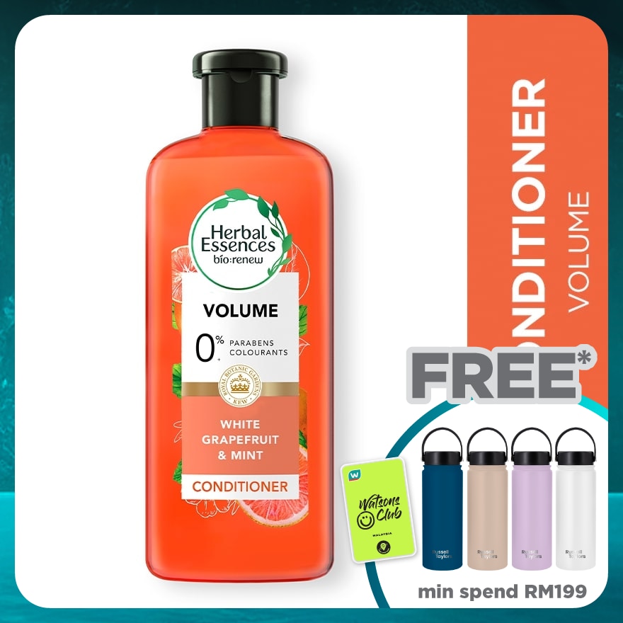 Herbal Essences Volume White Grapefruit & Mosa Mint Conditioner is a volumizing conditioner specifically crafted with naturally inspired ingredients for body & hair that’s full of life with a silicone-free formula that won’t weigh you down.