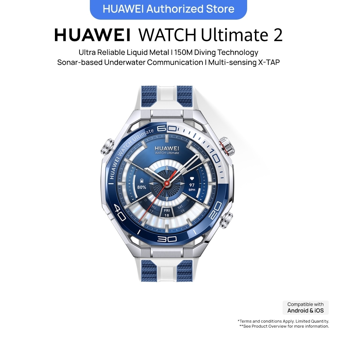 HUAWEI Ultimate 2 Smartwatch Blue, Ultra Reliable Liquid Metal, 150M Diving, Sonar-based Underwater Communication, Multi-sensing X-TAP