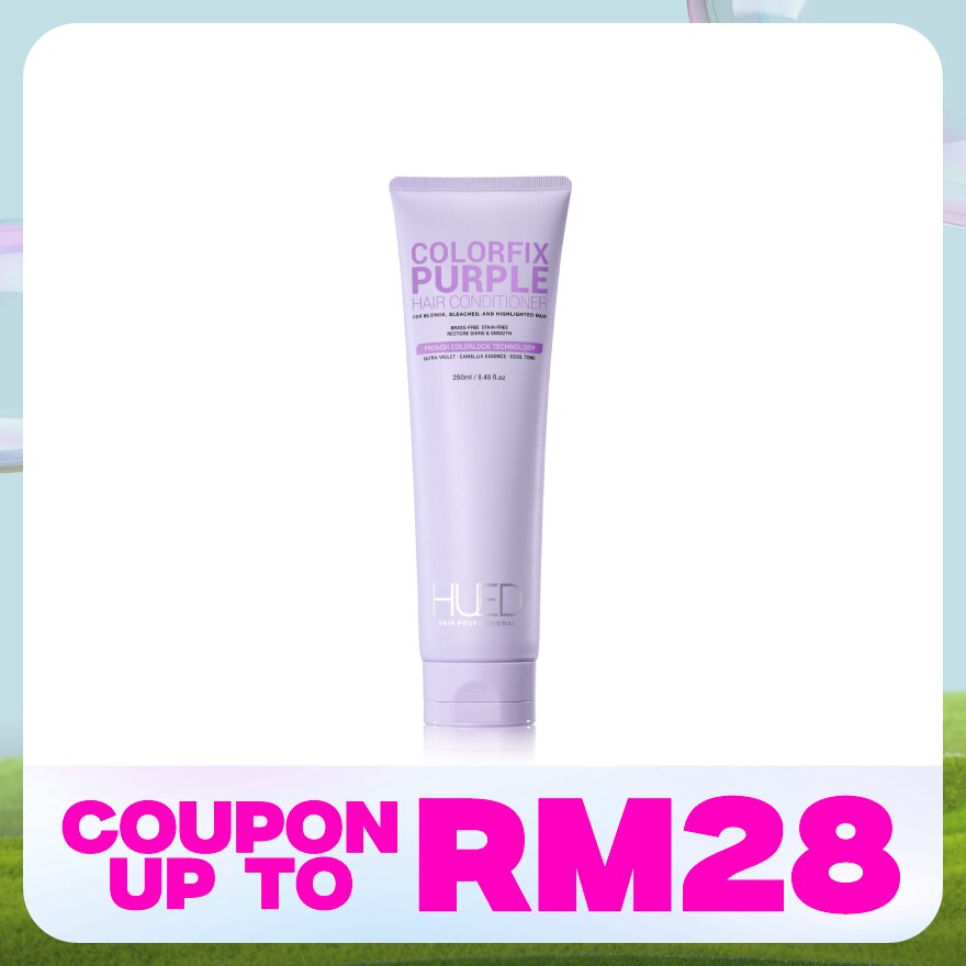 After shampooing, gently squeeze out excess water from your hair. Dispense an appropriate amount of conditioner into your palm and evenly distribute it through your hair, focusing on the lengths and ends while avoiding the scalp. Massage gently and allow it to sit for 35 minutes. Rinse thoroughly with water. For optimal color protection, pair with the HUED ColorFix Purple Hair Shampoo and Hair Mask.
