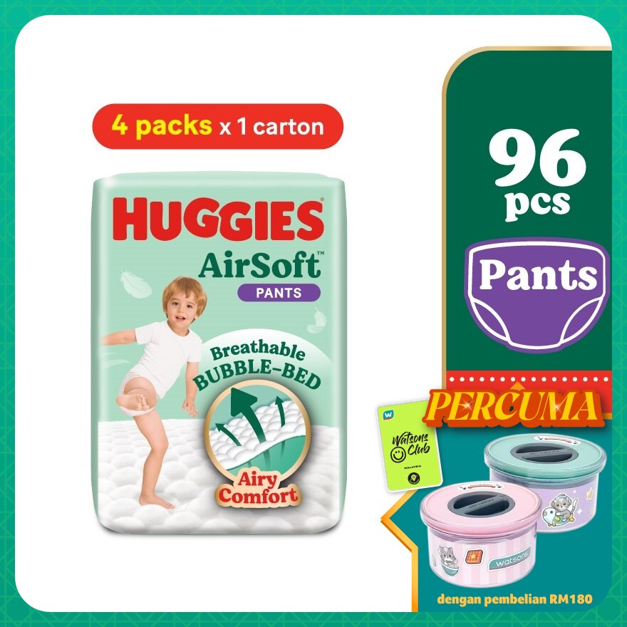 HUGGIES AirSoft Pants Diapers are specially designed with Breathable BUBBLE-BED for Ultimate Airy Comfort your baby's delicate skin - while providing up to 12 hours Overnight Absorbency.