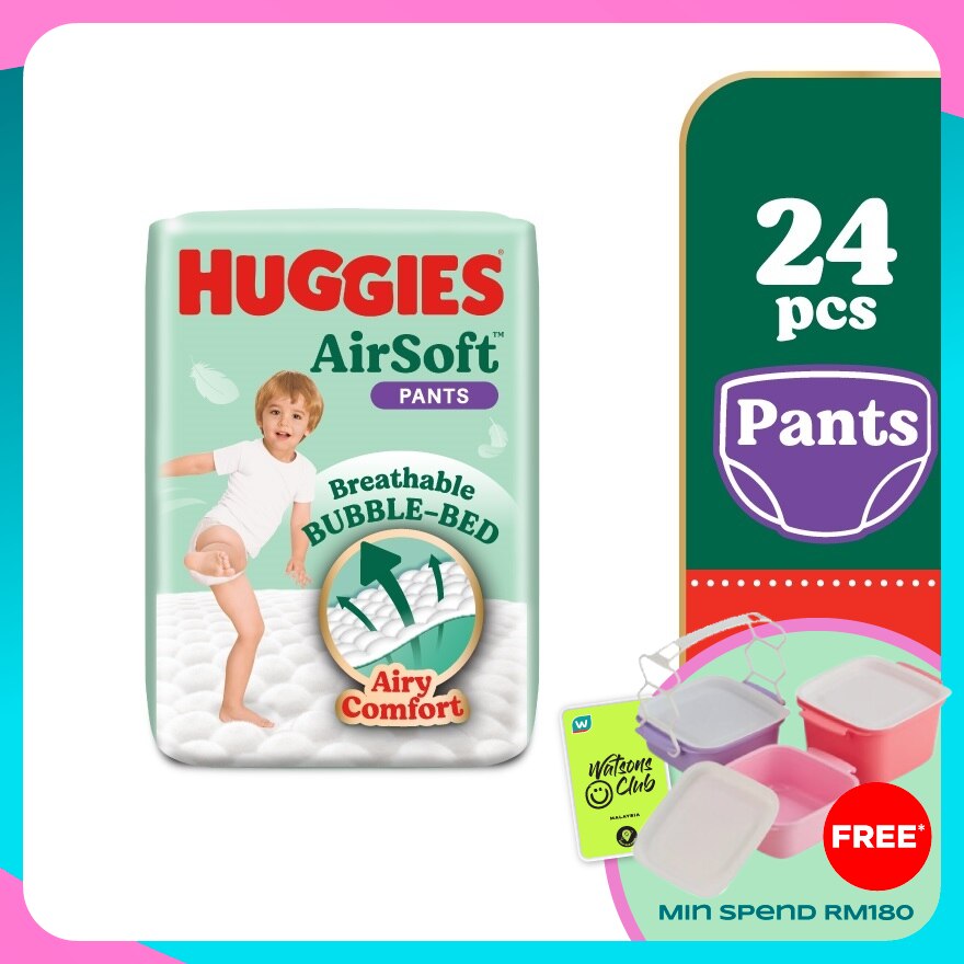 HUGGIES AirSoft Pants Diapers are specially designed with Breathable BUBBLE-BED for Ultimate Airy Comfort your baby's delicate skin - while providing up to 12 hours Overnight Absorbency.