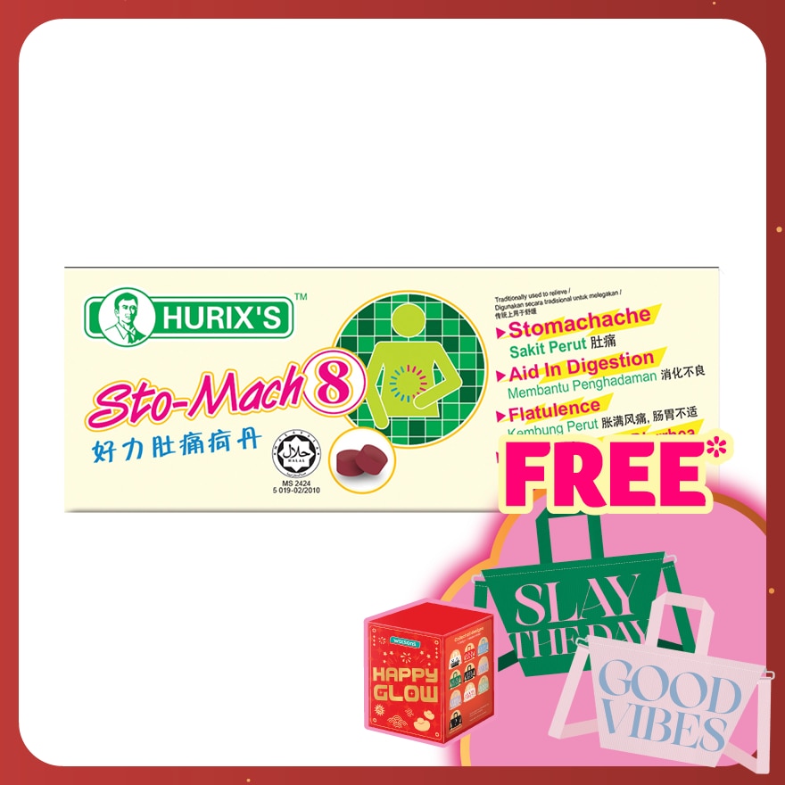 Suggested to consume immediately at symptom of stomachache. Adult: 6 tablets each time, 3 times daily. Take with warm water after meal.
