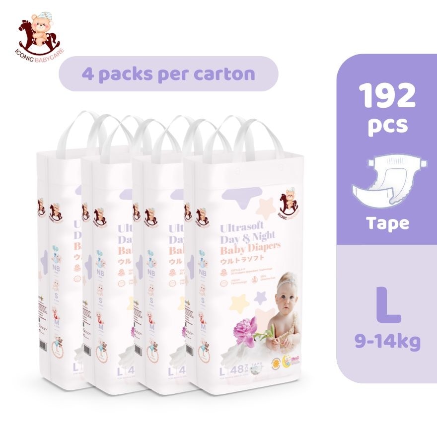Ultrasoft Day & Night Baby Diapers - Tape L 192pcs