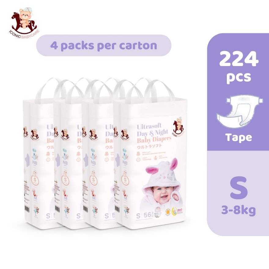Ultrasoft Day & Night Baby Diapers - Tape S 224pcs