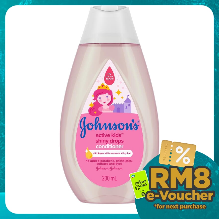 Johnson's ® Active Kids ™ Shiny Drops conditioner boost natural shine with Argan oil & silk proteins for shiny & silky hair. As baby starts to walk & play, their needs change. Our Active Kids™ range is specially designed to be gentle versus adult products, but effective for toddler needs.