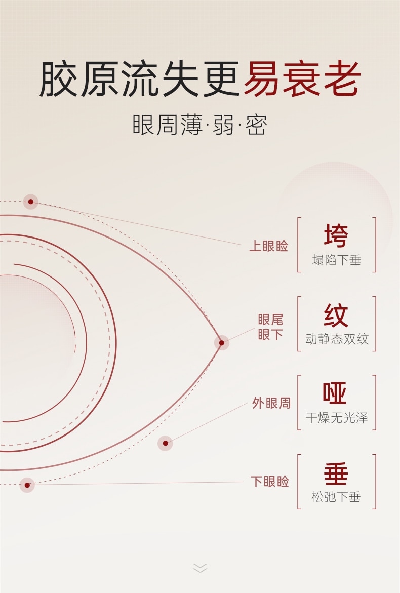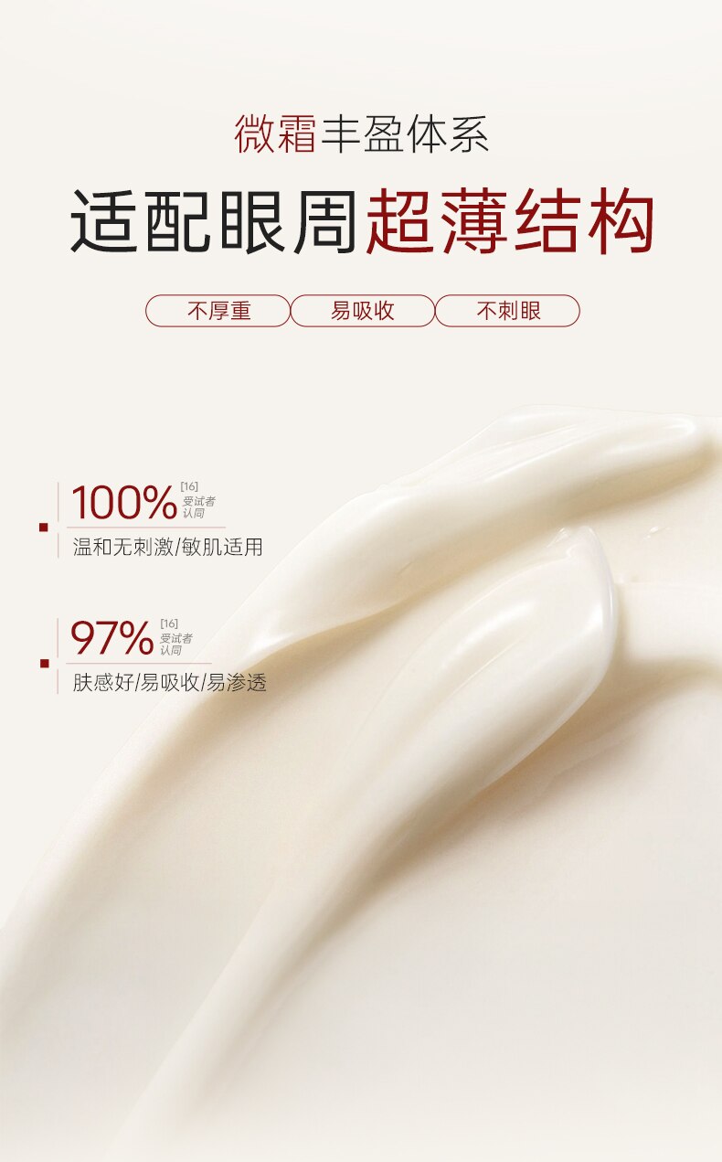 After cleansing and toning, apply an appropriate amount around the eye area. Gently massage along the contour of the eyes until fully absorbed.