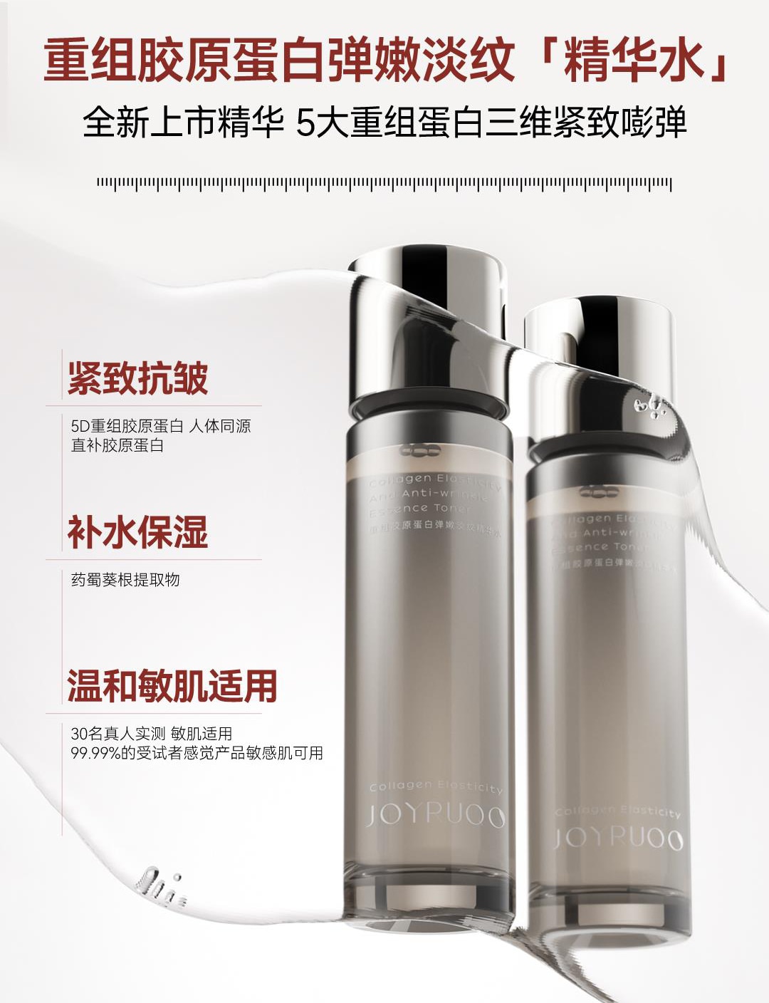 After cleansing in the morning and evening, take an appropriate amount of essence toner into your palm, apply evenly to the entire face, and massage until fully absorbed.