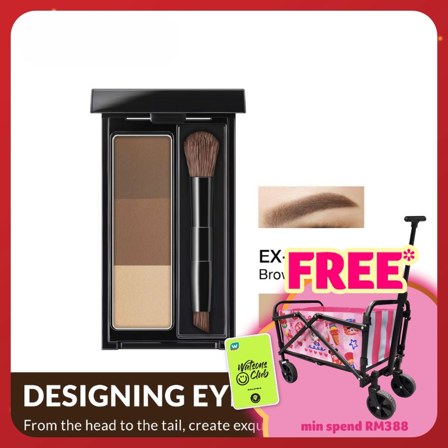 A new high coloration formula from the eyebrow powder series featuring 3D gradation eyebrow and nose shadow powders that create contoured eyebrows and eyes Point 1 Contains an oil that increases adhesion. A powder that fits the skin well with defined coloration, is easy to blend, and which lets you draw naturally contoured eyebrows. Point 2 The eyebrow brush has been upgraded to a larger size. Allows the powder to adhere easily to the skin and eyebrows, so that it is easier to create contoured eyebrows.