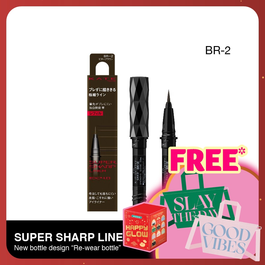 A liquid eyeliner with lasting colors that can stably draw ultra-fine lines regardless of where you place your fingers, even under heavy drawing pressure This is a refill that can be used by setting it into the holder of KATE SUPER SHARP LINER EX4.0. It can be replaced together with the brush tip.
