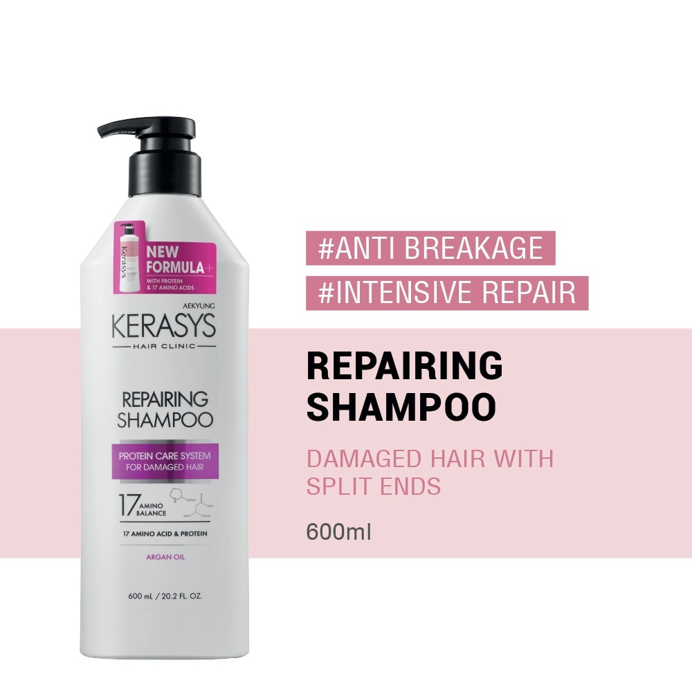 A damage-repairing shampoo formulated for hair that has been weakened by chemical treatments, heat styling, coloring, UV exposure or everyday wear and tear. Designed as part of Kerasys’s Hair Clinic system, this shampoo deeply cleanses while helping restore strength, shine and smoothness to damaged hair. The formula combines nourishing oils, ceramides and protein-rich actives to support hair resilience and reduce breakage, split ends and rough texture, making hair look healthier and more manageable over time.