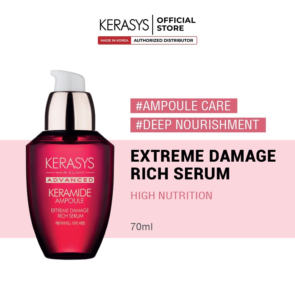 A deeply nourishing hair serum designed for extremely damaged, dry or brittle hair, this Keramide Extreme Damage Rich Serum (70 ml) from Kerasys combines the strengthening power of keratin and ceramide to help repair damage, restore elasticity and add shine. It’s a concentrated treatment formulated to target hair weakened by chemical treatments (dyeing, perming), heat styling, and environmental stress, helping reduce breakage and tangles while leaving hair softer, smoother and more manageable.