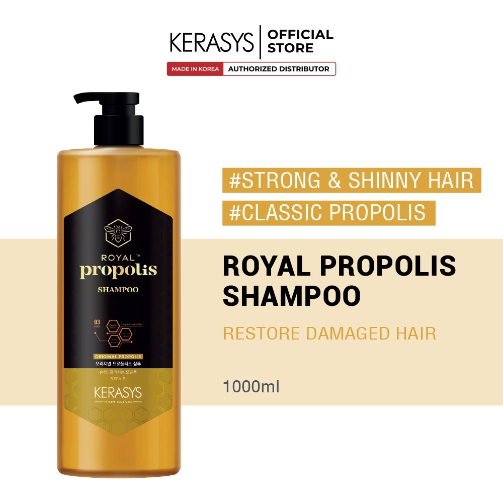 Infuse your hair with regal care using Kerasys Royal Propolis Repair Shampoo. This premium shampoo harnesses the nourishing power of propolis extract — a natural resin known for its rich nutrients and protective properties — to deeply cleanse, strengthen, and restore damaged hair. Specially formulated for dry, brittle, chemically treated, or heat-stressed hair, it delivers intense repair with every wash.