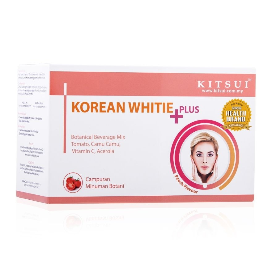 Kitsui Korean Whitie Plus helps you with your skin problems, pigmentation problems, black spots and lightening skin. It helps with anti-aging, brightening your skin tone and closes pimples pores. Kitsui Korean Whitie Plus is for people with skin problems like, freckles, scars, pores, dull and dark skin. Removes black spots or spots on the body and face . Results in 7 - 14 days. 100% botanical safe. Made from natural ingredients with a pack size of 17 packages x 5gm.
