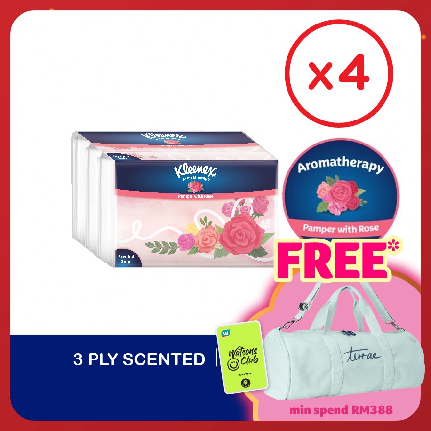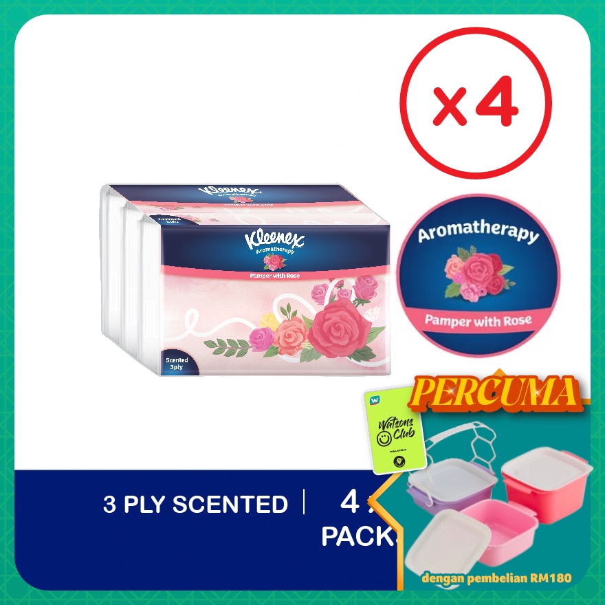 Kleenex Aromatherapy Range 3ply Facial Tissue uplifts your mood, made to rejuvenate and refresh your senses while also offered in beautiful designs as a showpiece at home, office or anywhere!