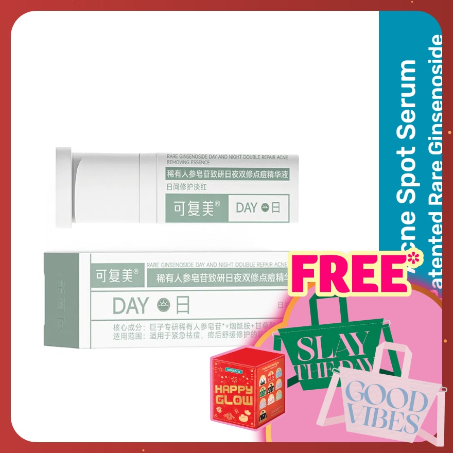 This product is acne spot serum. It contains patented rare Ginsenoside CK, which controls oil production from the roots of the skin! It cuts off the roots of acne to prevent recurrence! The daytime green tube has a lightweight lotion texture that is easy to apply and absorbs well. Clinically Test Real User Proven Results: 96.2% of participants agreed that the discomfort from acne was reduced; 98.1% of participants agreed on the soothing and repairing effects in acne-prone areas; 97.1% of participants agreed that acne heals faster after use, reducing acne recurrence, significantly reducing acne, and reducing closed comedones; 94.3% of participants agreed that the skin barrier in acne-prone areas improved after use