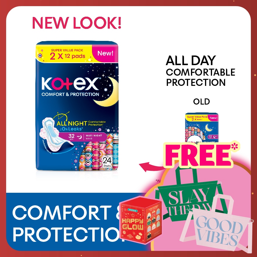 Comfort & Protection Overnight Wing Pad 32cm (12sx2 Packs)-Sanitary Pad with 100% Leak Free Comfort