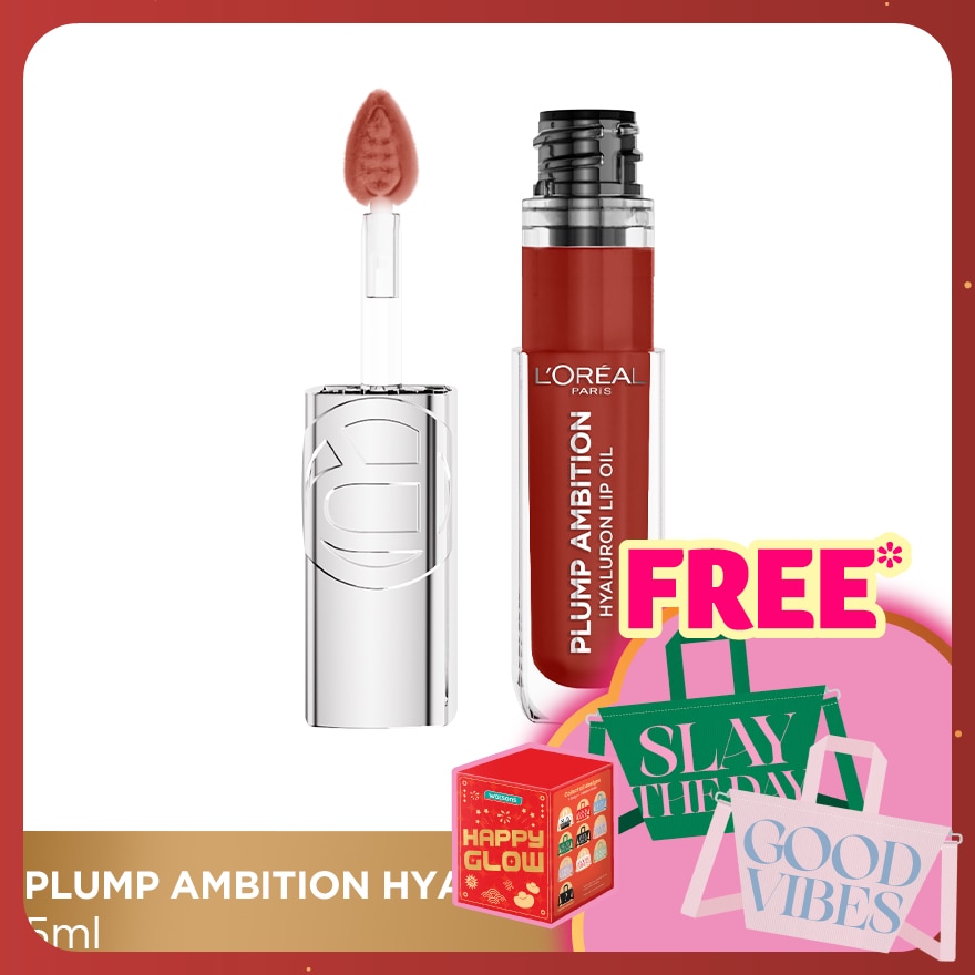 Ambition Hyaluron Lip Oils: Set your plump ambitions higher and discover L'Oreal Paris' new volumizing lip oil that drenches lips in 24 hours of hydration and plumping, glass-like shine